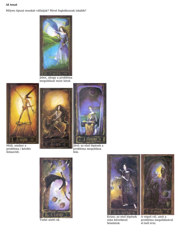 Az alábbi teszt Tarot kirakással szimuláltam: